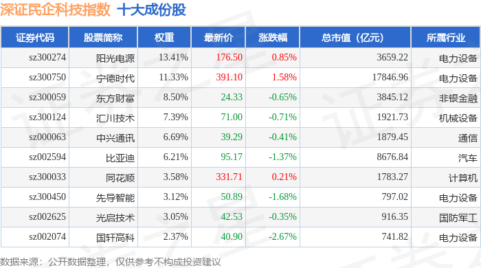 深证民企科技(970059)指数十大成份股详情如下: