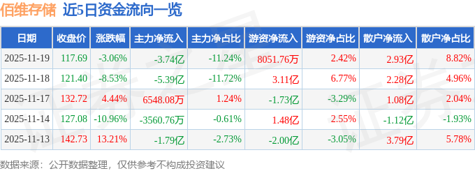 11月19日的资金流向数据方面,主力资金净流出3.74亿元,占总成交额11.24%,游资资金净流入8051.76万元,占总成交额2.42%,散户资金净流入2.93亿元,占总成交额8.82%。