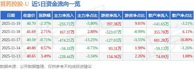 证券之星消息,截至2025年11月19日收盘,首药控股(688197)报收于40.7元,下跌2.37%,换手率1.66%,成交量1.06万手,成交额4411.41万元。