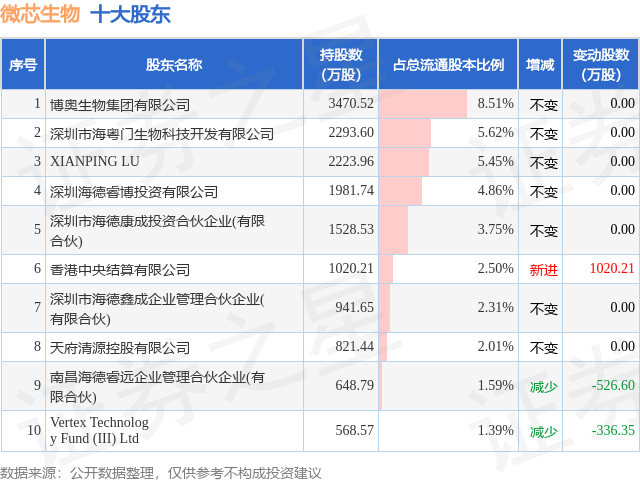 根据微芯生物2025年三季报公布的十大股东详情如下: