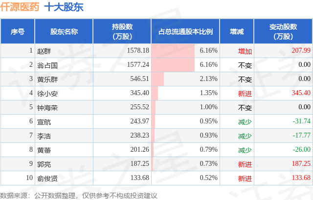 根据仟源医药2025年三季报公布的十大股东详情如下: