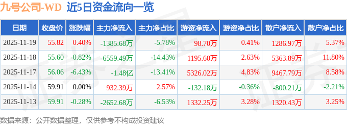 证券之星消息,截至2025年11月19日收盘,九号公司(689009)报收于55.82元,上涨0.4%,换手率0.78%,成交量4.3万手,成交额2.4亿元。