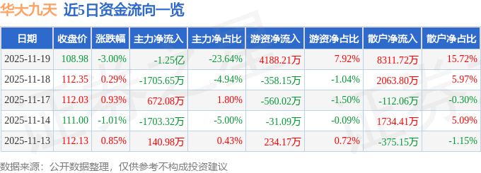 证券之星消息,截至2025年11月19日收盘,华大九天(301269)报收于108.98元,下跌3.0%,换手率0.88%,成交量4.8万手,成交额5.29亿元。