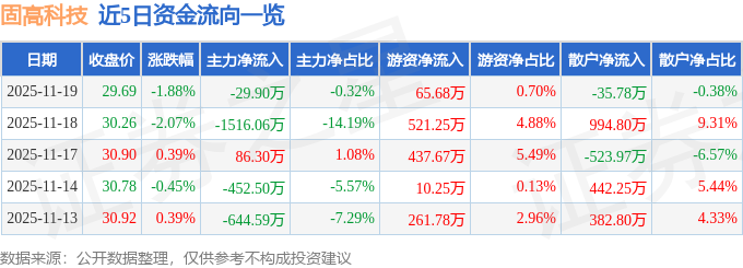 证券之星消息,截至2025年11月19日收盘,固高科技(301510)报收于29.69元,下跌1.88%,换手率1.12%,成交量3.13万手,成交额9354.41万元。