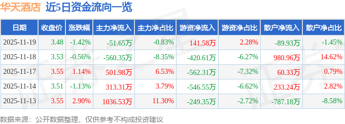 证券之星消息,截至2025年11月19日收盘,华天酒店(000428)报收于3.48元,下跌1.42%,换手率1.75%,成交量17.8万手,成交额6205.87万元。