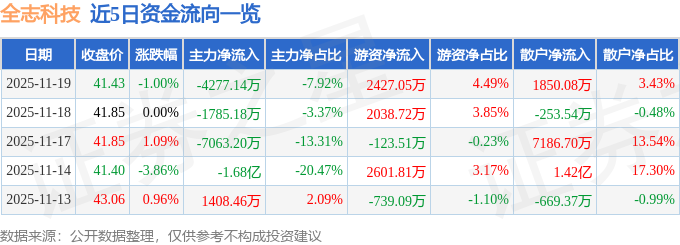 11月19日的资金流向数据方面,主力资金净流出4277.14万元,占总成交额7.92%,游资资金净流入2427.05万元,占总成交额4.49%,散户资金净流入1850.08万元,占总成交额3.43%。