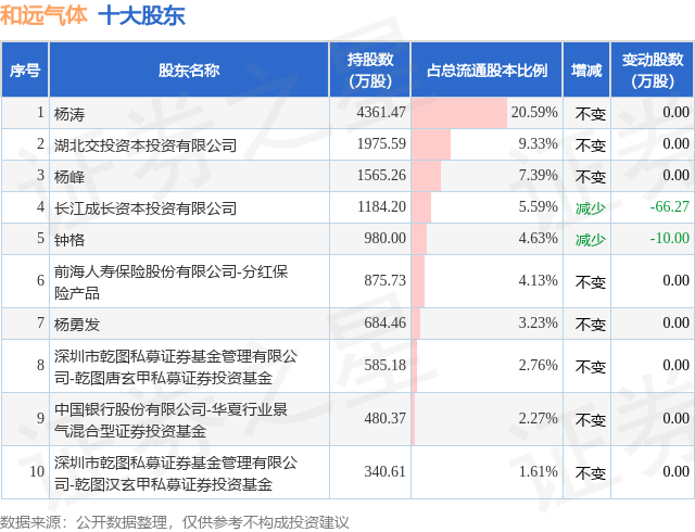 根据和远气体2025年三季报公布的十大股东详情如下: