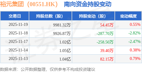 证券之星消息,11月19日南向资金增持54.45万股裕元集团(00551.HK)。近5个交易日中,获南向资金减持的有2天,累计净减持370.2万股。近20个交易日中,获南向资金减持的有11天,累计净减持641.55万股。截至目前,南向资金持有裕元集团(00551.HK)9981.32万股,占公司已发行普通股的6.21%。