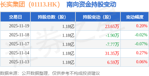 证券之星消息,11月19日南向资金增持23.65万股长实集团(01113.HK)。近5个交易日中,获南向资金增持的有3天,累计净增持51.92万股。近20个交易日中,获南向资金增持的有13天,累计净增持175.22万股。截至目前,南向资金持有长实集团(01113.HK)1.18亿股,占公司已发行普通股的3.37%。