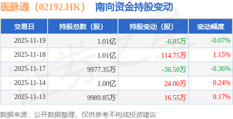 证券之星消息,11月19日南向资金减持6.85万股医脉通(02192.HK)。近5个交易日中,获南向资金增持的有3天,累计净增持111.95万股。近20个交易日中,获南向资金减持的有13天,累计净减持573.9万股。截至目前,南向资金持有医脉通(02192.HK)1.01亿股,占公司已发行普通股的13.72%。