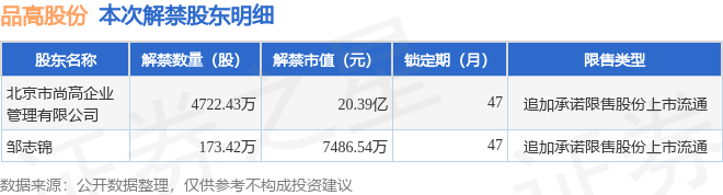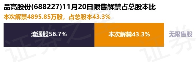 证券之星消息,根据市场公开信息整理,品高股份(688227)于11月20日将有4895.85万股限售股份解禁,为公司追加承诺限售股份上市流通,占公司总股本43.3%。(本次数据根据历史公告整理得出,实际情况以上市公司最新公告为准)最近一年内,该股累计解禁93.51万股,占总股本的0.83%。本次解禁后,公司已无限售股份。具体如下图所示: