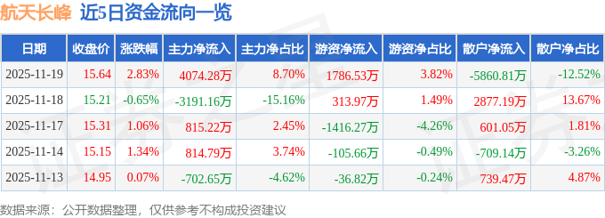 11月19日的资金流向数据方面,主力资金净流入4074.28万元,占总成交额8.7%,游资资金净流入1786.53万元,占总成交额3.82%,散户资金净流出5860.81万元,占总成交额12.52%。