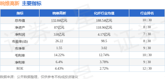 该股主要指标及行业内排名如下: