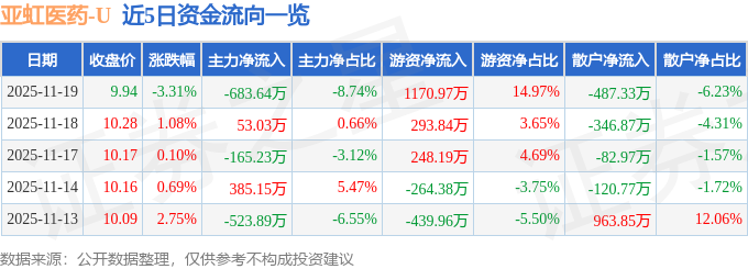 证券之星消息,截至2025年11月19日收盘,亚虹医药(688176)报收于9.94元,下跌3.31%,换手率1.79%,成交量7.81万手,成交额7822.57万元。