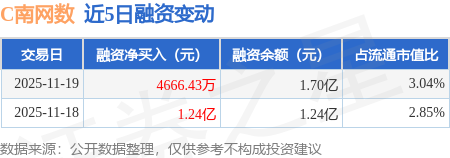 证券之星消息,11月19日,C南网数(301638)融资买入2.06亿元,融资偿还1.59亿元,融资净买入4666.43万元,融资余额1.7亿元。