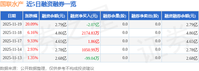 国联水产融资融券信息显示,融资方面,当日融资买入1.54亿元,融资偿还3.61亿元,融资净偿还2.07亿元。融券方面,融券卖出0.0股,融券偿还0.0股,融券余量0.0股,融券余额0.0万元。融资融券余额2.79亿元。