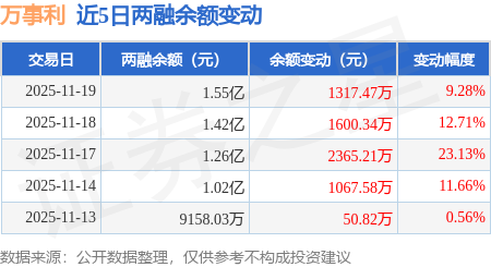 证券之星消息,11月19日,万事利(301066)融资买入4333.91万元,融资偿还3016.45万元,融资净买入1317.47万元,融资余额1.55亿元,近3个交易日已连续净买入累计5283.02万元,近20个交易日中有15个交易日出现融资净买入。