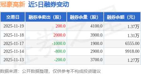 证券之星消息,11月19日,冠豪高新(600433)融资买入1099.06万元,融资偿还704.49万元,融资净买入394.57万元,融资余额2.86亿元,近3个交易日已连续净买入累计1235.91万元。