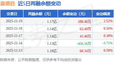 证券之星消息,11月19日,星德胜(603344)融资买入643.16万元,融资偿还354.76万元,融资净买入288.4万元,融资余额1.17亿元,近3个交易日已连续净买入累计395.29万元,近20个交易日中有14个交易日出现融资净买入。