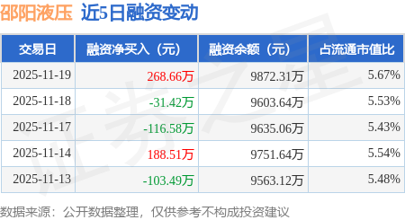 证券之星消息,11月19日,邵阳液压(301079)融资买入622.38万元,融资偿还353.72万元,融资净买入268.66万元,融资余额9872.31万元。