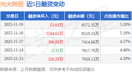 证券之星消息,11月19日,光大同创(301387)融资买入1244.51万元,融资偿还1191.49万元,融资净买入53.03万元,融资余额8572.35万元,近3个交易日已连续净买入累计1554.57万元。