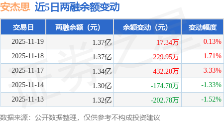 证券之星消息,11月19日,安杰思(688581)融资买入911.38万元,融资偿还894.04万元,融资净买入17.34万元,融资余额1.37亿元,近3个交易日已连续净买入累计679.48万元,近20个交易日中有14个交易日出现融资净买入。