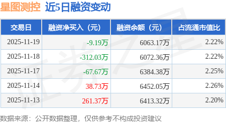 证券之星消息,11月19日,星图测控(920116)融资买入261.75万元,融资偿还270.94万元,融资净卖出9.19万元,融资余额6063.17万元,近20个交易日中有11个交易日出现融资净买入。