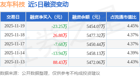 证券之星消息,11月19日,友车科技(688479)融资买入292.61万元,融资偿还315.86万元,融资净卖出23.25万元,融资余额5454.07万元。