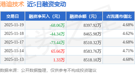 证券之星消息,11月19日,港迪技术(301633)融资买入103.72万元,融资偿还171.78万元,融资净卖出68.06万元,融资余额8397.92万元。