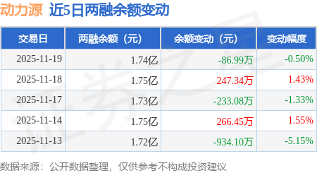 证券之星消息,11月19日,动力源(600405)融资买入646.02万元,融资偿还733.01万元,融资净卖出86.99万元,融资余额1.74亿元。