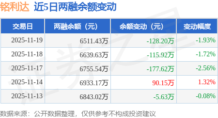 证券之星消息,11月19日,铭利达(301268)融资买入720.58万元,融资偿还846.36万元,融资净卖出125.78万元,融资余额6438.81万元。