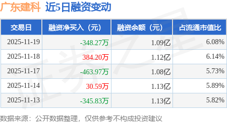 证券之星消息,11月19日,广东建科(301632)融资买入408.28万元,融资偿还756.55万元,融资净卖出348.27万元,融资余额1.09亿元。