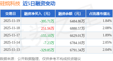 证券之星消息,11月19日,硅烷科技(920402)融资买入718.42万元,融资偿还1114.14万元,融资净卖出395.71万元,融资余额6484.86万元。