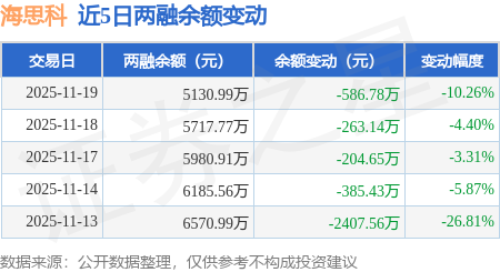 证券之星消息,11月19日,海思科(002653)融资买入650.69万元,融资偿还1130.48万元,融资净卖出479.78万元,融资余额3703.93万元,近20个交易日中有12个交易日出现融资净买入。