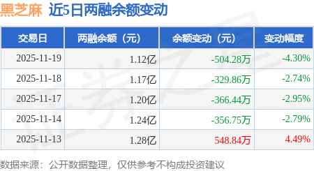 证券之星消息,11月19日,黑芝麻(000716)融资买入496.82万元,融资偿还1001.1万元,融资净卖出504.28万元,融资余额1.12亿元。