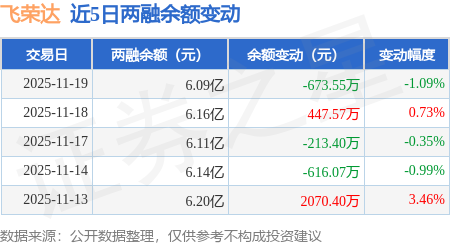 证券之星消息,11月19日,飞荣达(300602)融资买入2238.77万元,融资偿还2911.56万元,融资净卖出672.79万元,融资余额6.09亿元。