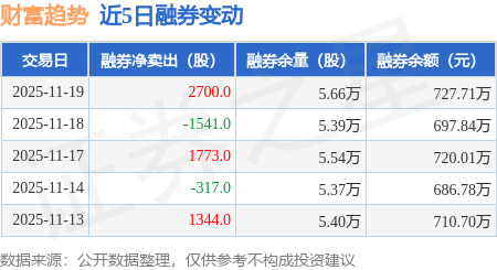 融券方面,当日融券卖出2700.0股,融券偿还0.0股,融券净卖出2700.0股,融券余量5.66万股,近20个交易日中有14个交易日出现融券净卖出。