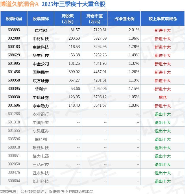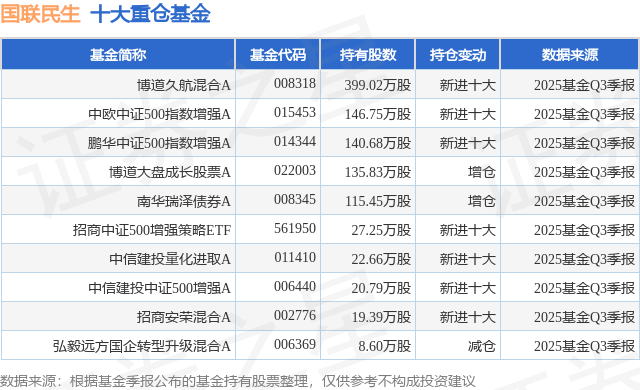 根据2025基金Q3季报公募基金重仓股数据,重仓该股的公募基金共11家,其中持有数量最多的公募基金为博道基金的博道久航混合A。博道久航混合A目前规模为14.73亿元,最新净值1.7619(11月19日),较上一交易日下跌0.51%,近一年上涨11.96%。该公募基金现任基金经理为刘玮明。刘玮明在任的基金产品包括:博道启航混合A,管理时间为2024年4月27日至今,期间收益率为47.5%;博道消费智航A,管理时间为2024年4月27日至今,期间收益率为28.19%;博道和瑞多元稳健6个月持有混合A,管理时间为2024年9月25日至今,期间收益率为9.95%;