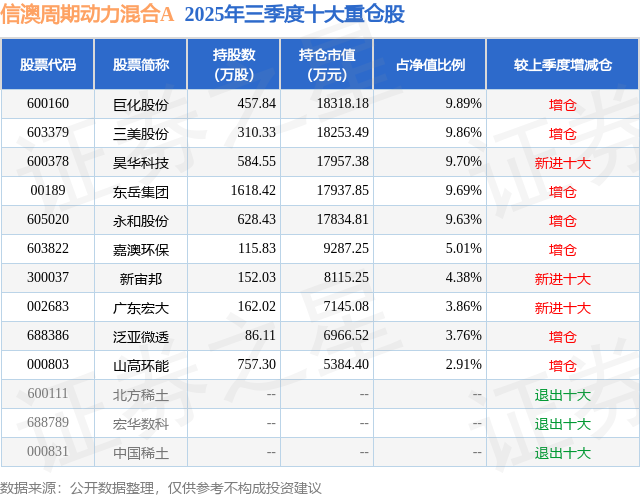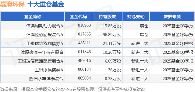 根据2025基金Q3季报公募基金重仓股数据,重仓该股的公募基金共7家,其中持有数量最多的公募基金为信达澳亚基金的信澳周期动力混合A。信澳周期动力混合A目前规模为8.05亿元,最新净值1.8276(11月19日),较上一交易日上涨0.62%,近一年上涨54.96%。该公募基金现任基金经理为吴清宇 张明烨。吴清宇在任的基金产品包括:信澳景气优选混合A,管理时间为2021年12月21日至今,期间收益率为59.72%;信澳优势产业混合A,管理时间为2023年5月29日至今,期间收益率为121.36%;信澳匠心严选一年持有混合A,管理时间为2024年11月29日至今,期间收益率为86.42%。张明烨在任的基金产品包括:信澳匠心回报混合A,管理时间为2024年3月11日至今,期间收益率为104.93%;