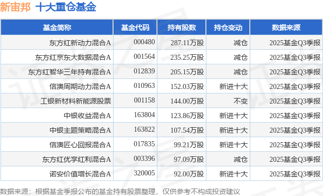 重仓新宙邦的前十大公募基金请见下表: