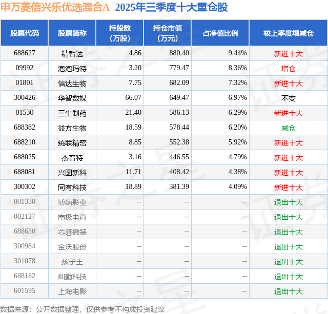 申万菱信兴乐优选混合A的前十大重仓股如下: