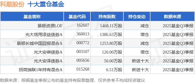 重仓科顺股份的公募基金请见下表: