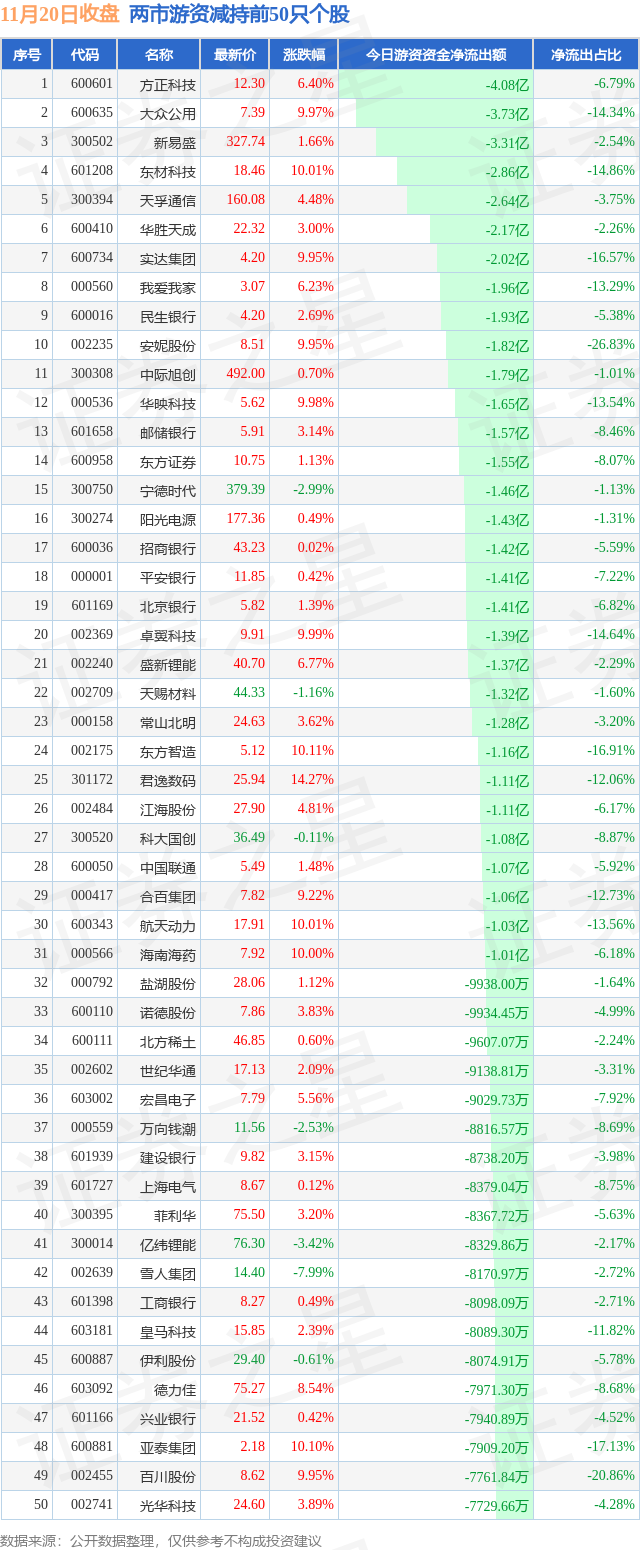 两市游资减持最多的前十只个股为: