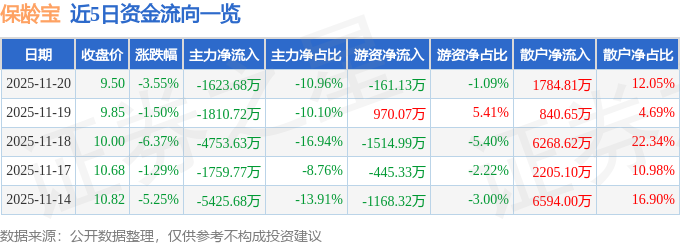 证券之星消息,截至2025年11月20日收盘,保龄宝(002286)报收于9.5元,下跌3.55%,换手率4.19%,成交量15.47万手,成交额1.48亿元。
