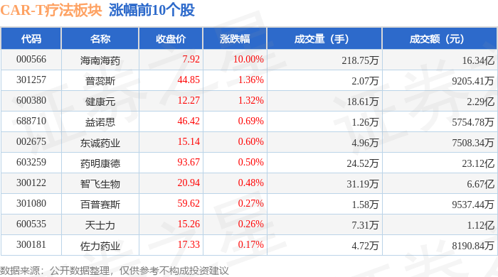 从资金流向上来看,当日CAR-T疗法板块主力资金净流出5887.96万元,游资资金净流出1.17亿元,散户资金净流入1.76亿元。CAR-T疗法板块个股资金流向见下表: