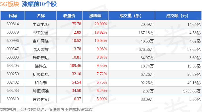 从资金流向上来看,当日5G板块主力资金净流出21.6亿元,游资资金净流出3.03亿元,散户资金净流入24.63亿元。5G板块个股资金流向见下表: