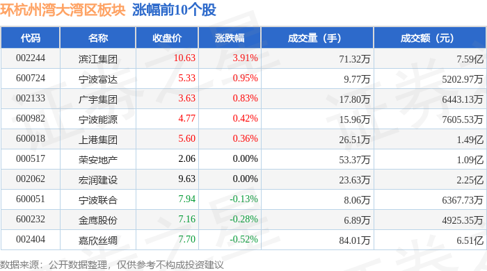 从资金流向上来看,当日环杭州湾大湾区板块主力资金净流出1.72亿元,游资资金净流入4537.15万元,散户资金净流入1.27亿元。环杭州湾大湾区板块个股资金流向见下表: