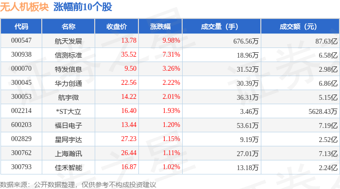 从资金流向上来看,当日无人机板块主力资金净流出28.61亿元,游资资金净流入6.01亿元,散户资金净流入22.6亿元。无人机板块个股资金流向见下表: