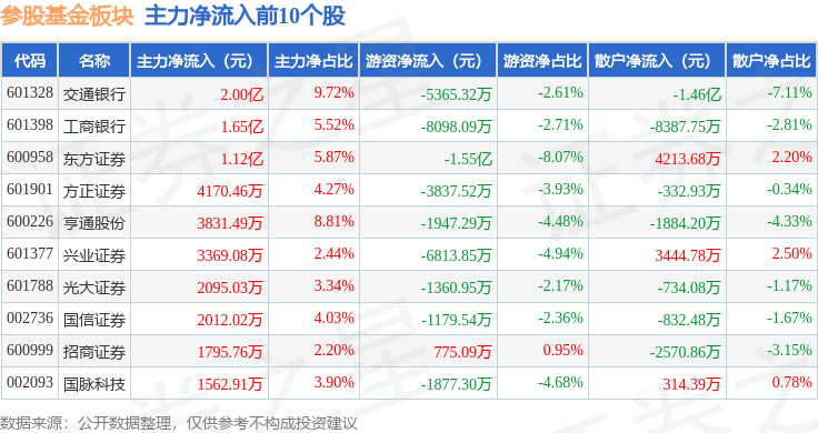 从资金流向上来看,当日参股基金板块主力资金净流出4.62亿元,游资资金净流出1.51亿元,散户资金净流入6.13亿元。参股基金板块个股资金流向见下表: