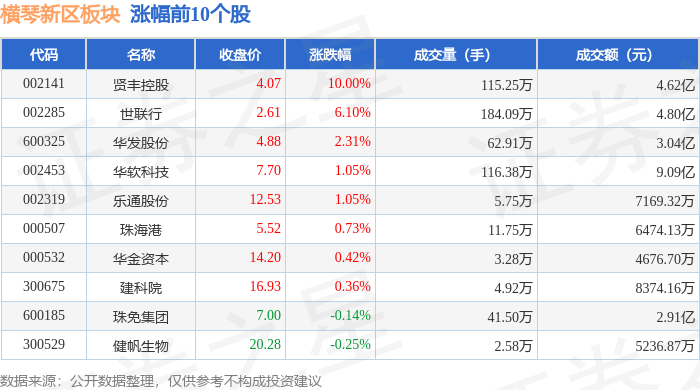 从资金流向上来看,当日横琴新区板块主力资金净流出3.39亿元,游资资金净流入4168.17万元,散户资金净流入2.98亿元。横琴新区板块个股资金流向见下表: